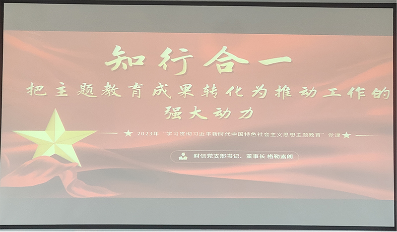 為深入開展學習貫徹習近平新時代中國特色社會主義思想主題教育,全面貫徹黨的二十大精神、推進新時代黨的建設偉大工程的總體要求,按照區政府國資委、區投資公司黨委關于主題教育的統一安排部署,公司黨支部書記、董事長格勒索朗同志于近期以“知行合一,把主題教育成果轉化為推動工作的強大動力”為題,開展主題教育黨課。支部副書記、副總經理李敏同志主持學習會議,公司全體干部職工參加學習。