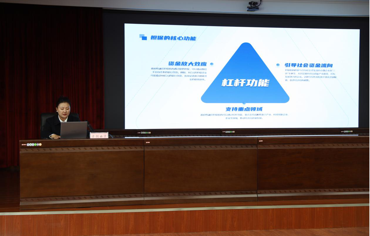宣講會上,我司作為政府性融擔機構代表進行了專題宣講,風險管理部索朗曲宗同志以“擔保賦能 助力發展”為題,聚焦支小支農職責使命,分享了融資擔保的意義、功能,并緊緊圍繞當前小微企業融資痛點,介紹了公司“審核制見貸即擔”“備案制見貸即擔”、銀擔“總對總”“再擔?!钡忍厣a品的適用對象及政策要點,讓與會企業對融資擔保政策有了更深的了解。同時,現場解答了參會企業的提問,幫助其解決企業發展中的融資痛點難點,獲得了與會企業高度認可。